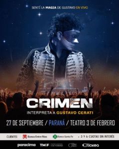El espectáculo que celebra la música de Gustavo Cerati llega por primera vez a Paraná para rendir homenaje a uno de los artistas más influyentes del rock latinoamericano.