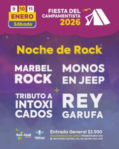 La Fiesta del Campamentista 2026 volverá a ofrecer entrada gratuita para los residentes de San José y un valor popular para quienes lleguen desde otras localidades, consolidándose como una celebración abierta, familiar y accesible. Con tres días de música, actividades y propuestas gastronómicas, la noche del sábado se posiciona como el momento ideal para que el rock tome protagonismo y marque el pulso de una edición que promete ser inolvidable para campamentistas, turistas y público local.